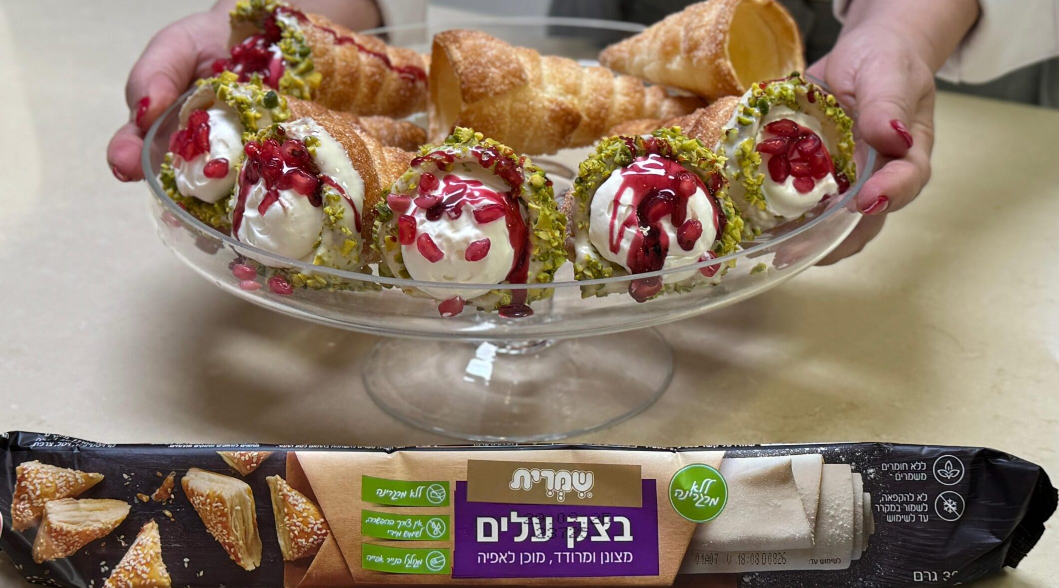 גביעי בצק עלים (קונוסים) מקורמלים עם קרם מלבי של קרין גורן, קינוח לא שגרתי, מרגש במיוחד בניחוח ורדים ו…קל להכנה בזכות בצק עלים שמרית: בצק מרודד, מצונן ומוכן לעבודה ללא צורך בהפשרה – רק תדאגו שתמיד תהיה לכם חבילה במקרר.
